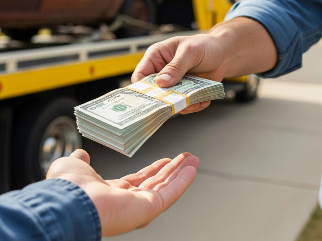 Yes, actual cash. We bring it with us when we pick up your car. No checks, no "we'll mail it to you" - cash in your hand before we tow your vehicle.